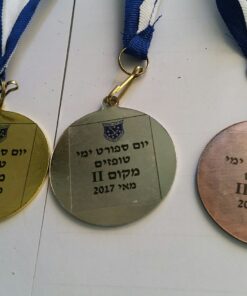 מדליה גודל 5 סמ זהב ,כסף,ארד לכל ענפי הספורט גם לנושאים כללים אפשר לצרף כל לוגו או כיתוב לפי בקשה כמו בתמונה