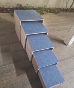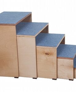 סט 5 מדרגות עץ הנכנסות אחת מתחת לשנייה, משמשות לתרגול ושפור יכולות מוטוריות, טיפוס ומעבר משרפרף אחד לשני בטיפוס או ירידה. מתאים כחלק ממסלולי אתגר ותנועה לגיל הרך משמש כציוד משלים לריפוי בעיסוק Occupational Therapy הסט כולל חמישה שרפרפים שחלקם העליון מצופה חומר לבד למניעת החלקה. מידות השרפרפים: רוחב כ-54 ס'מ. גובה 10-50 ס'מ. חומר: עץ לביד לבנה. ציפוי לבד. מיוצר בישראל!