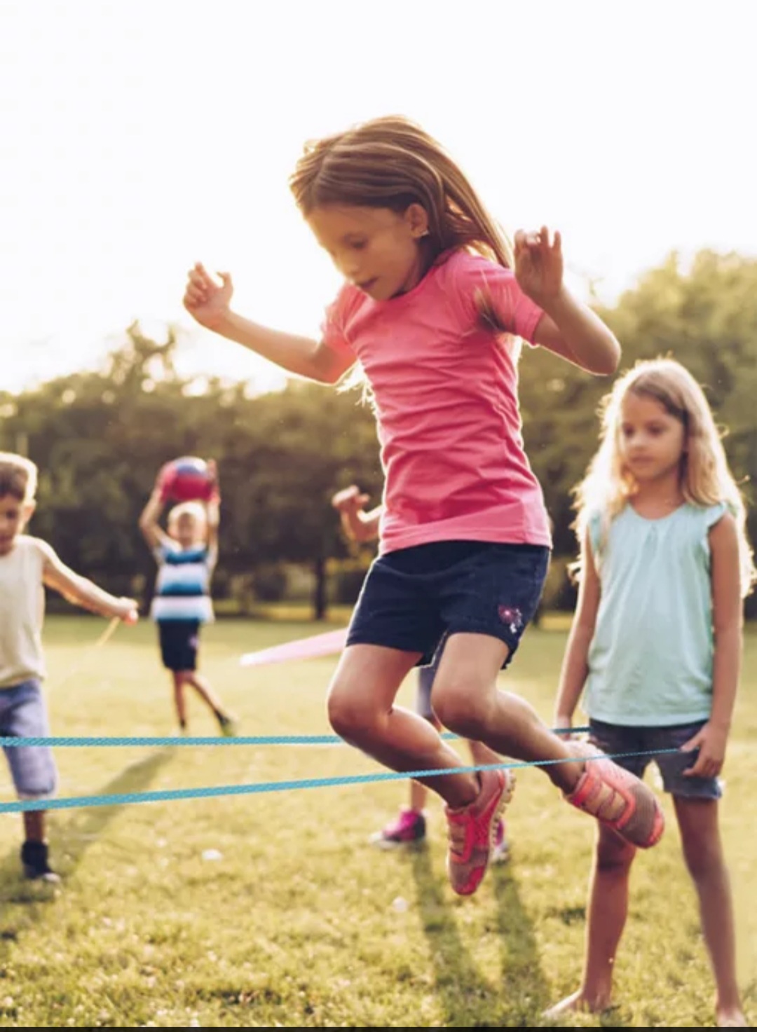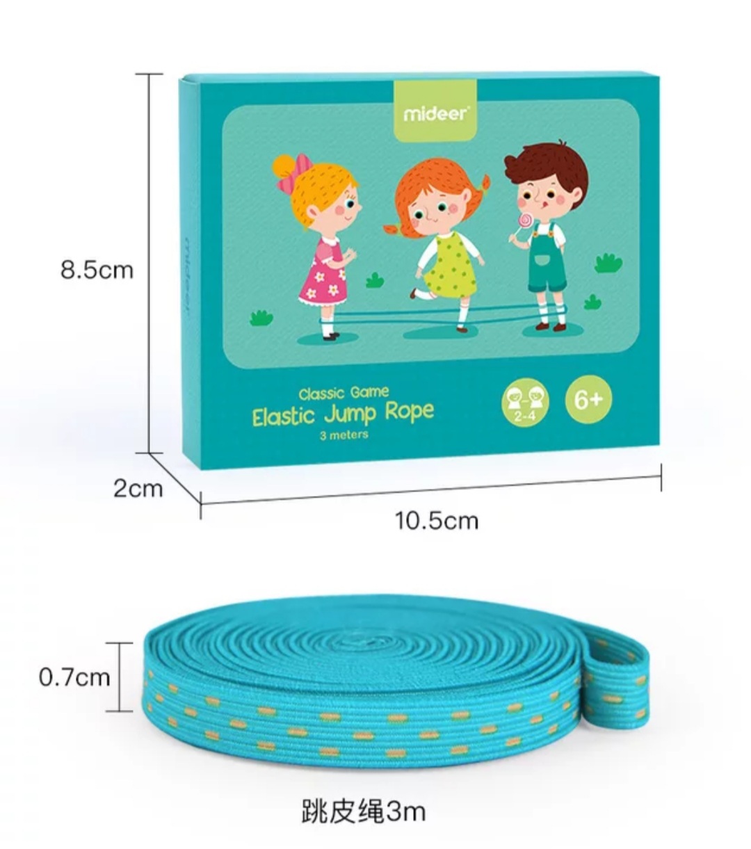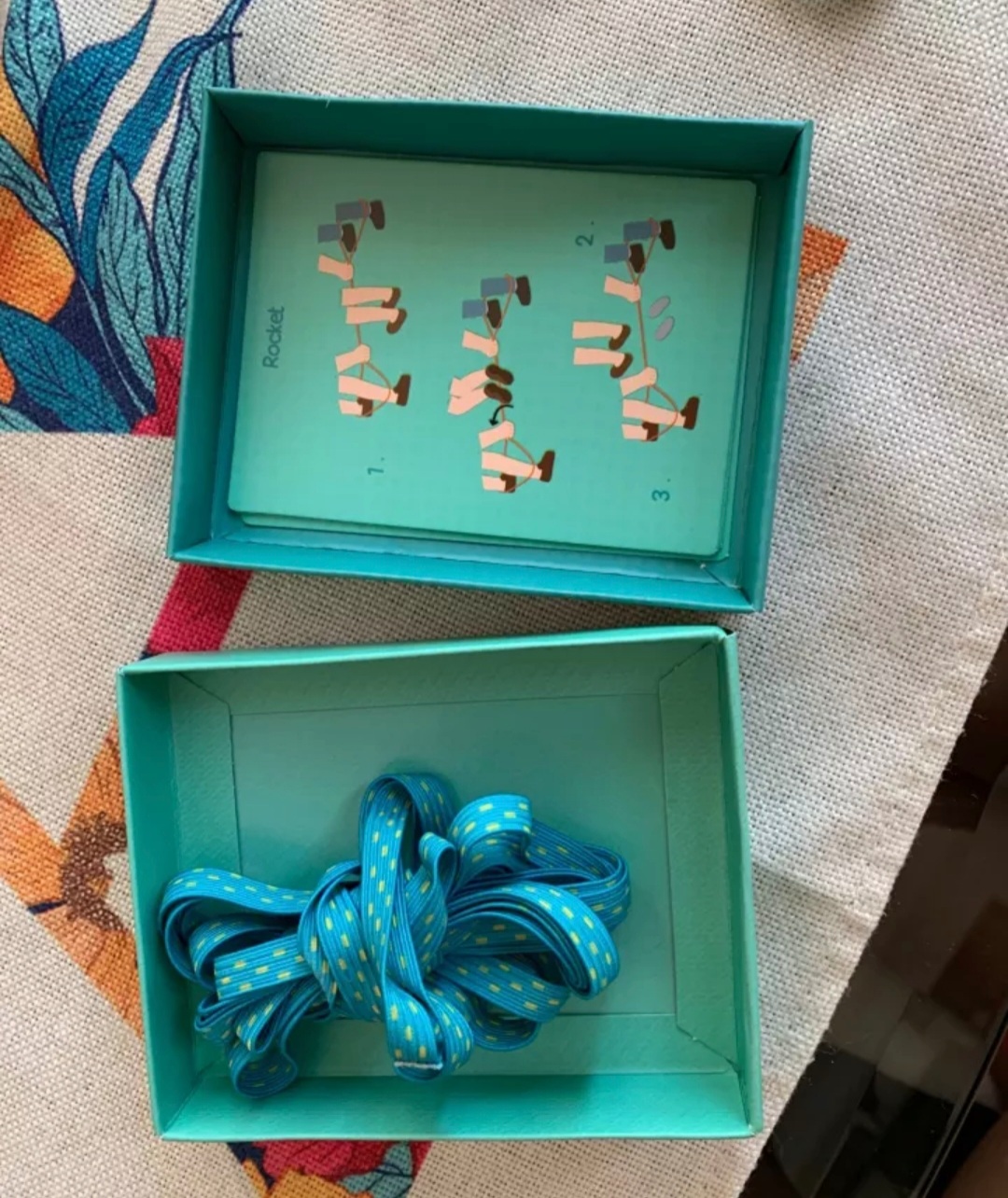 גומי צבעוני באורך 3 מטר + 5 קלפים עם משימות קפיצה שונות ומאתגרות לפעילות גופנית