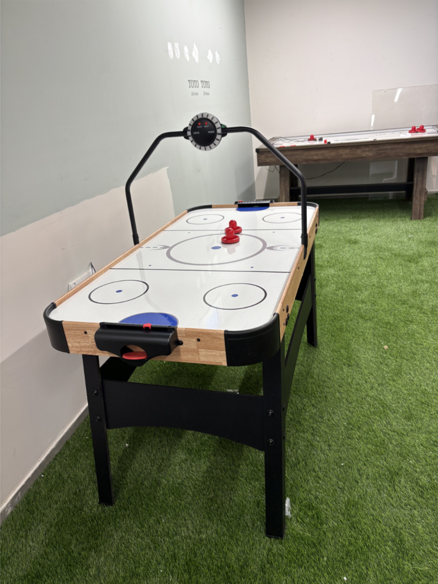 הוקי אוויר במידה 140*68*82 עם סאונד משחק וסופר אנלוגי של נקודות ,יציב כולל סט דסקיות וידיות