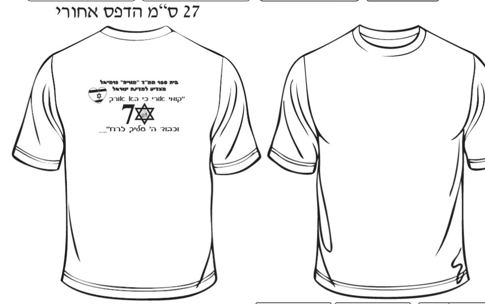 | תיאור חלופי | חולצות מודפסות .חולצות עם הדפסה לוגו, חולצות עם הדפסה לצעדה,חולצות עם הדפסה לבתי ספר |