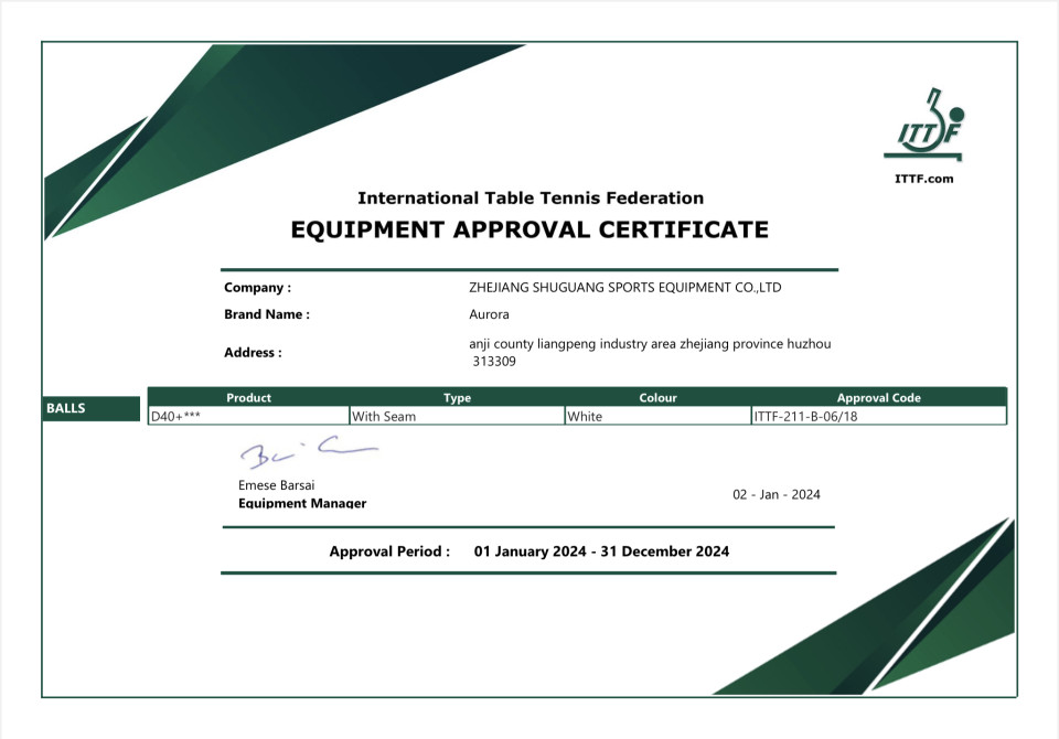 כדור 3 כוכבים מאושר ITTF