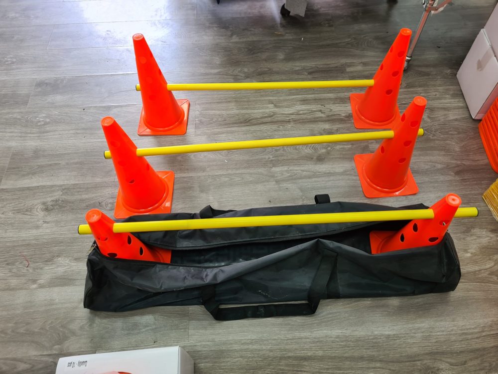 6 קונוס מחורר 35 סמ +3 מוט פעילות 1 מטר+ תיק שחור לנשיאת הערכה בקלות
