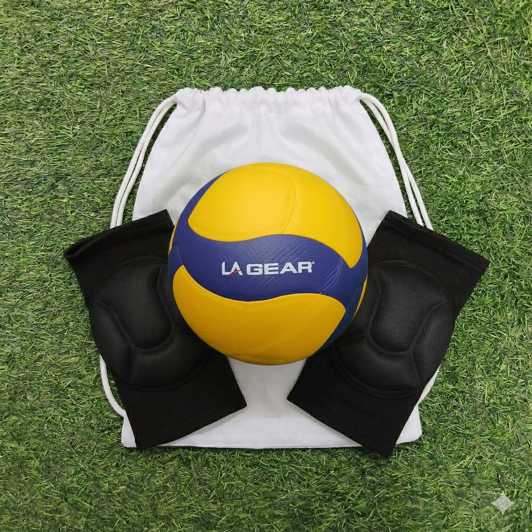 ערכת כדורעף בסיסית הכוללת כדור כדורעף, זוג ברכיות ותיק נשיאה נוח.