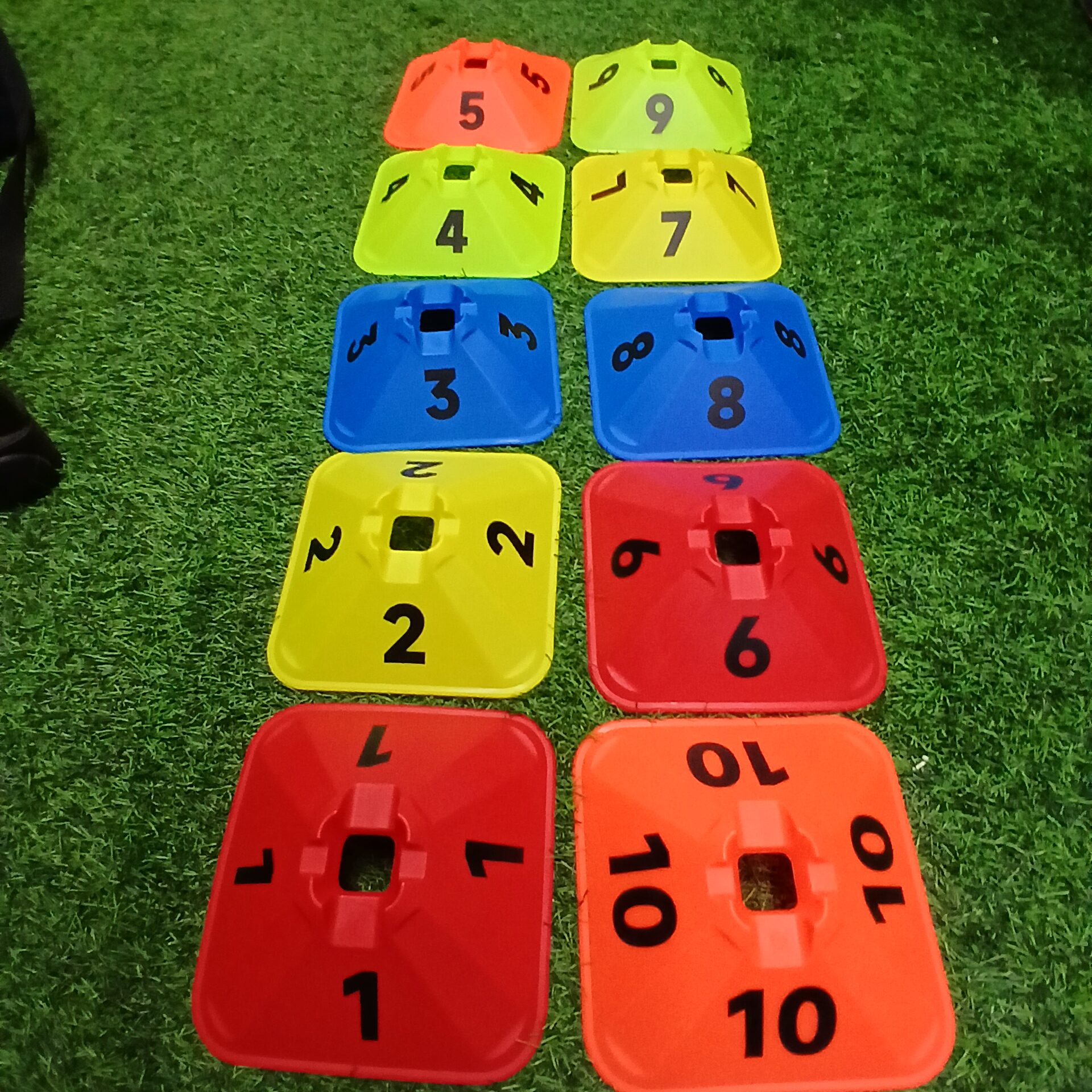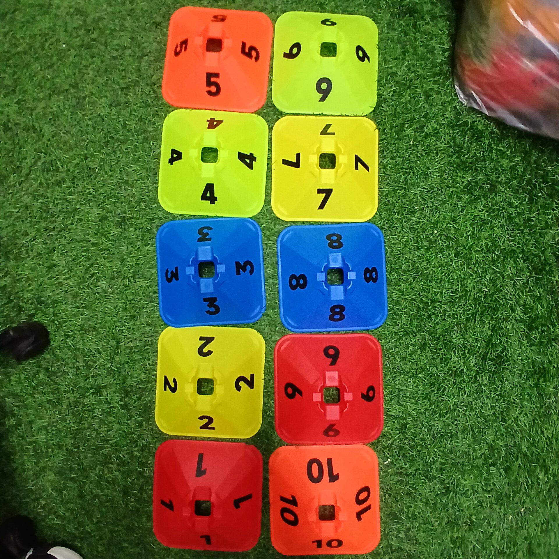סט ערכת קונוס בצורת מרובע צבעוני מגיע עם מספרים מ 1 עד 10 ערכה מושלמת לאימונים