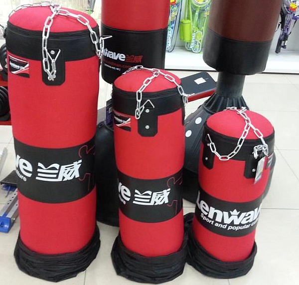 השק עשוי מבד עבה וחזק PVC, כולל חיבורים מאסיביים, חבלים ושרשראות ברזל לתלייה.